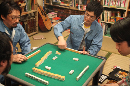 I've seen a Jackie Chan movie where they played Majohng. I can't recall the name, though... If I remember correctly, they were using wooden tiles. I'd never seen such a Mahjong set before.