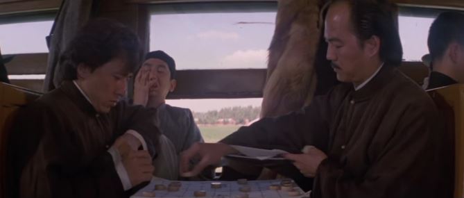 This early scene on a train is from the Jackie Chan movie Drunken Master 2 (a.k.a. The Legend of Drunken Master) but they're playing Xiangqi (Chinese chess).